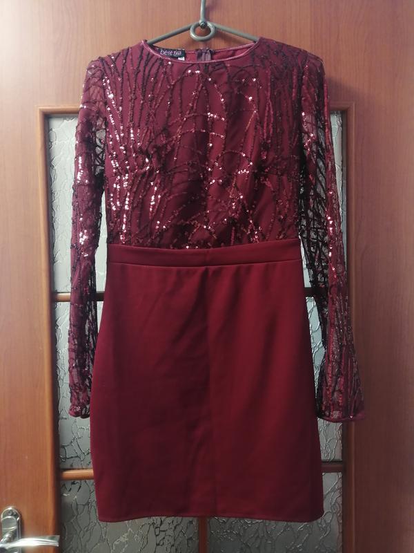 Красивое бордовое платье в паетках. Ни разу не одевалось. Размер - либо на маелькую М, либо С.