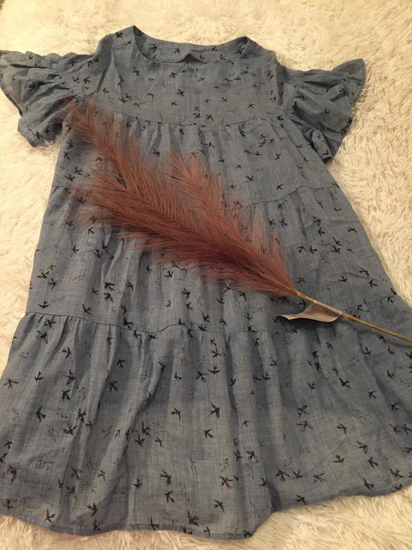 Сукня вільного крою ( плаття оверсайз ) Малюнок-пташки, плаття, як пышноватое, така модель) світиться на фото показала