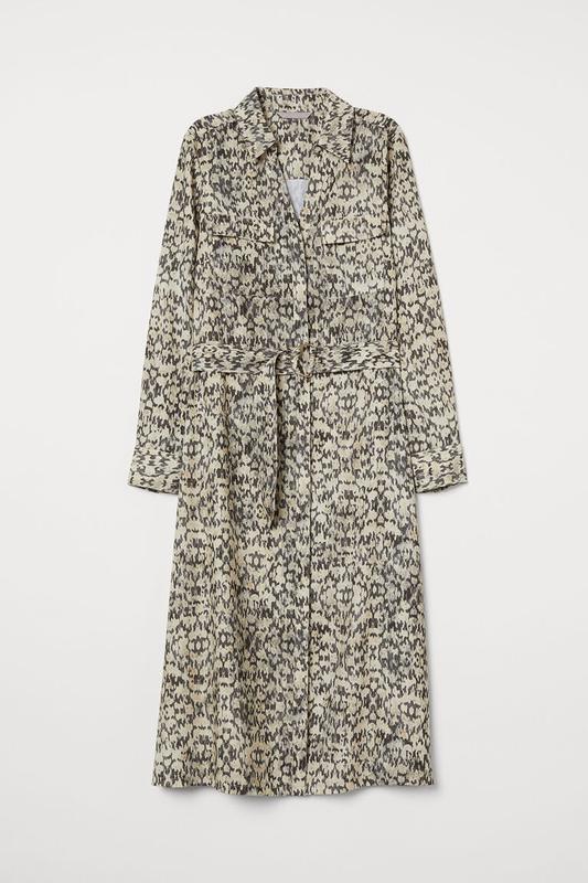 Сукня сорочка довжини міді з поясом H&M довжиною до коліна з V-подібним вирізом, накладними нагрудними кишенями, знімним поясом з підлозі круглими металевими кільцями. Довгі рукави з манжета і на застібці. Без підкладки. Розмір 40 ПОГ - 49см Плечі - 39,5 см Рукав - 59см ПІТ - 49см ПОБІДИ - 57см Довжина - 116,5 см Нова річ без бірки
