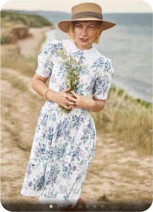 Очень красивое платье миди в мелкий цветочный принт на пуговицах, с белым батистовым воротничком, размер указан s