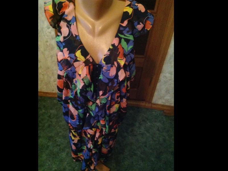 Платье очень красивое и нарядное, на подкладке, шелковое, застежка - крючки, воланы, состояние отличное, размер 38, рост - 165 см, длина-75, пог-46, пот-44, побеги-46