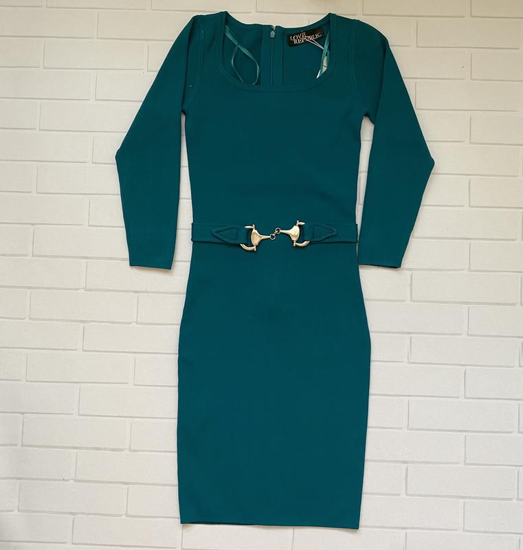 Дуже красиве і якісне плаття з ефектом утяжки. Абсолютно новий!!! Талія підкреслюється пояском, дуже ефектно формує фігуру. Супер красивий колір, на спині потайна блискавка, рукав 3/4. Довжина по спині - 86 см