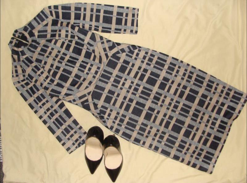 Тепле трикотажне плаття футляр Phase Eight. Геометричний малюнок відмінно видовжує фігуру. Розмір 36/8/S Виміри ПОГ 38 ПІТ 34 см ПОБІДИ 44 см Довжина рукава 42 см Довжина сукні 103 см