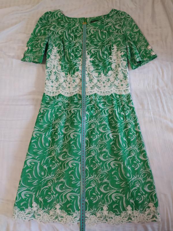 Дуже красиве нестандартне плаття! Зелене, з білим мереживом. Візуально зменшує талію. Одягала один раз, на новий рік. Якість супер, дефектів немає, міцне. 42 розмір