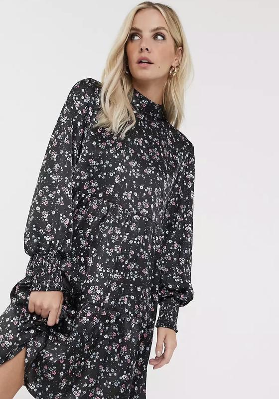 Плаття атласне Vila Petite з високим коміром в кольорах розмір 36 Бюст 78-88 см Стегна 85-95 см Довжина 88см Рукав 50см