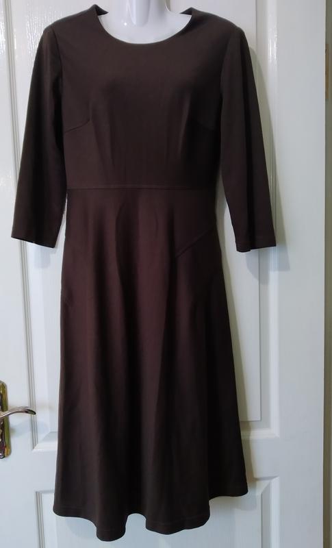 сукня темно коричневий колір, фотоапарат дає відблиск.Довжина 107 см, рукава від плеча 43 см( укорочені рукава), груди обсяг 88 см+ тягнеться, плечі 41 см!