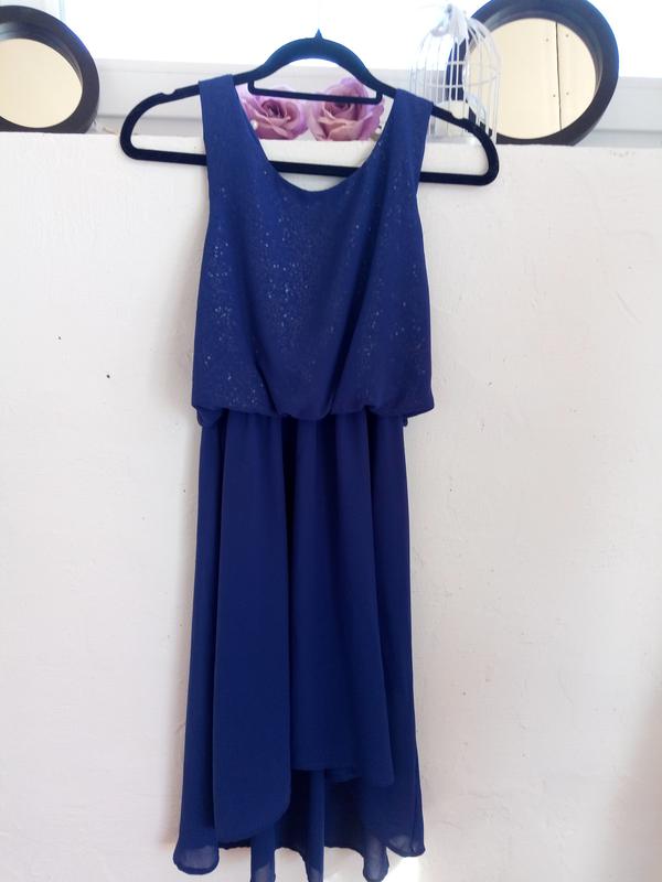 Нове синє плаття. Розмір 12. Подойде на 10 розмір. ПОГ-50 см ПОТ-30-47 см гумка Довжина-91/111 см Висота верхній частині сукні 36 див.