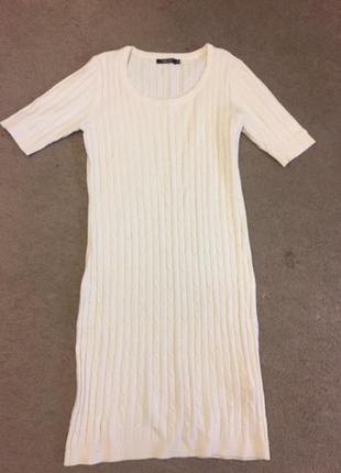 Вязаное платьице молочного цвета с коротким рукавом. Замеры не в растяжку ПОГ-42см Длинна-85см. Рукав-25см. Мягкое и красиво ложится по фигурке. Состояние нового.