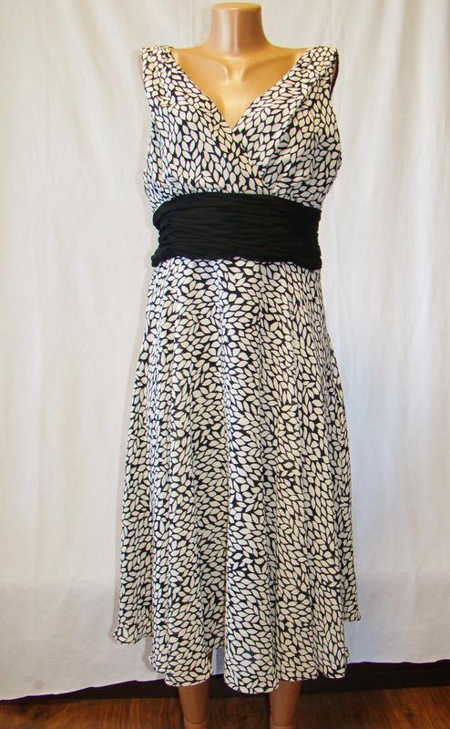 Сукня Wallis (Розмір 52 (L, UK16)) Верх як шифон, на підкладці. Спереду запах. Застібка в бічному шві, по талії драпірування і зав'язка на поясі. Спідниця підлозі кльош. Склад 100% поліестр. Розмір 52 (L, UK16). Ширина по грудях 52см, по поясу 47,5 см. Ширина по плечу 5 див. Глибина пройми 28 см Довжина 118 див.