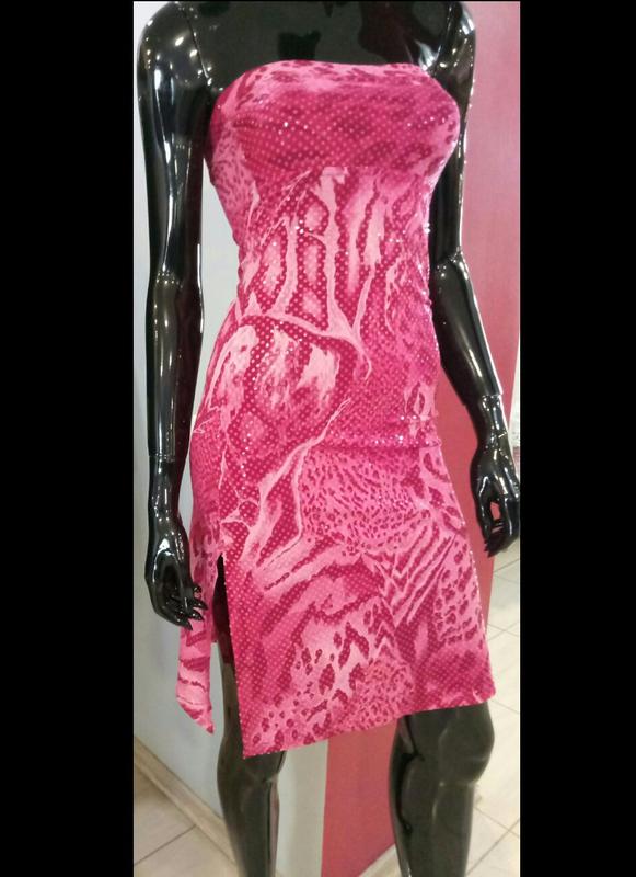 Платье по фигуре, ткань в прозрачных пайетках с стрейчем, эффектный принт, разрезы по бокам, красивое на выход и на отдых, подойдёт на S