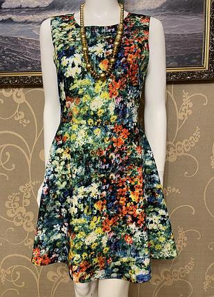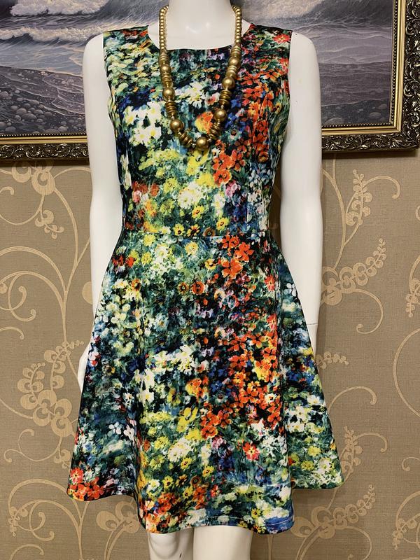 Пропоную вашій увазі дуже красиве і стильне брендове плаття в різнокольорових квіточках (нажаль фото не передало всю красу цієї речі..в живу виглядає набагато цікавіше і колір більш насичений). Фірма QED LONDON. Розмір вказаний 10. Склад: 100% поліестер..тканина трохи тягнеться. Нове. ПОГ-46..тягнеться до 50, довжина сукні-88, плечі-37, полуобъем в талії-37, полуобъем в стегнах-вільний крій. УВАГА!!! При купівлі три і більше моїх речей-безкоштовна доставка посилки Новою поштою. Вдалих покупок.