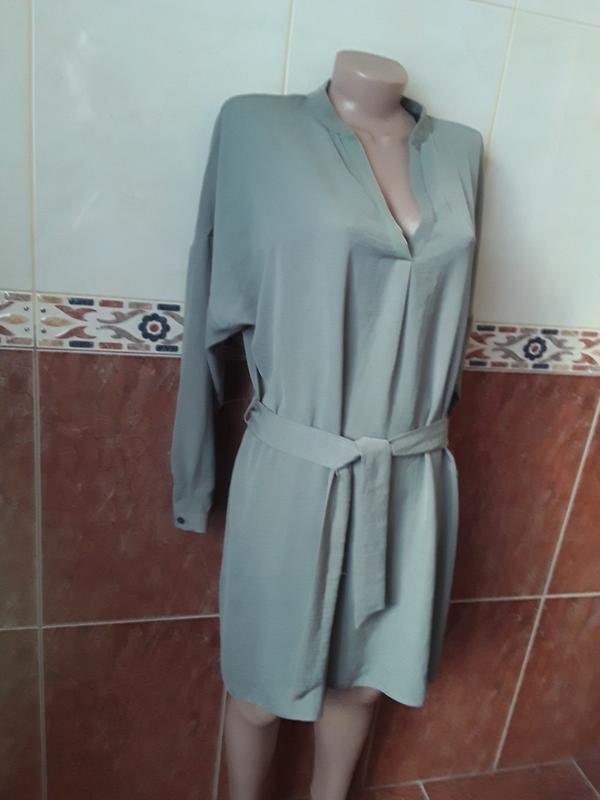 В ціну входить комісія Шафе 12%. Нове , дефектів немає . Колір як на фото, світлий хакі. Тканина тонка, шовковиста Розмір вказаний 14/42 дивіться за мірками плечі спущені 72 см підлозі обхват грудей 56 см підлозі обхват талії 57см підлозі обхват стегон 65 см довжина 90 см довжина рукава від ворота 74 см