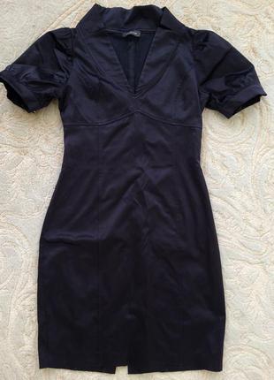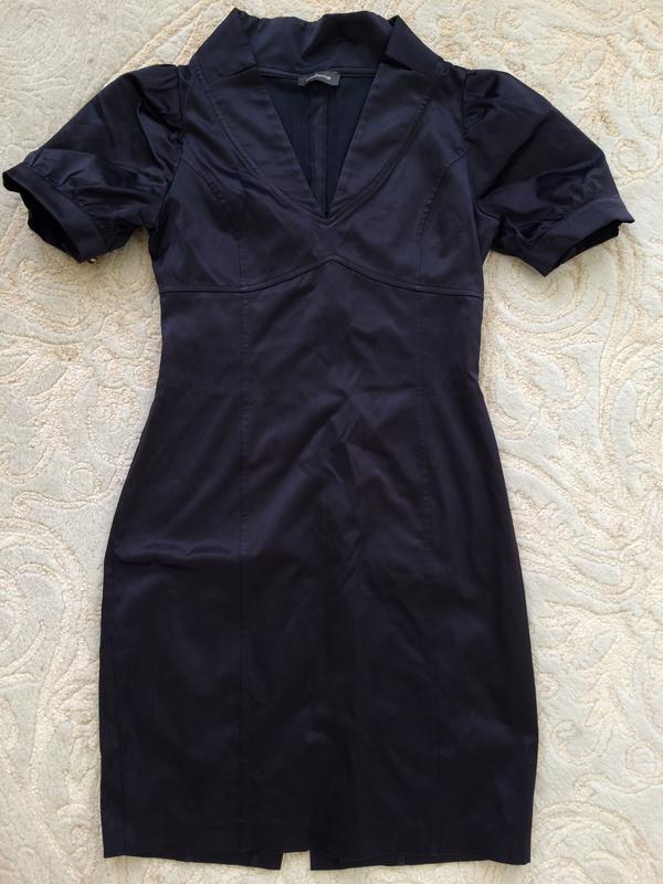 Розмір S, темно-синен сукню із щільного атласу, виробництво Туреччина, красиві рукавчики з гудзичками, виглядає дуже елегантно і по-діловому.