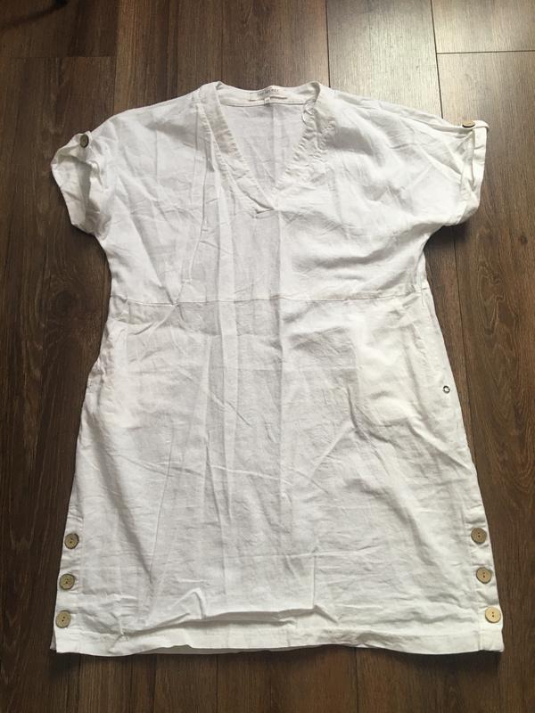 Лляне плаття з кишенями,є поясок.Довжина 90,пог58,пот51