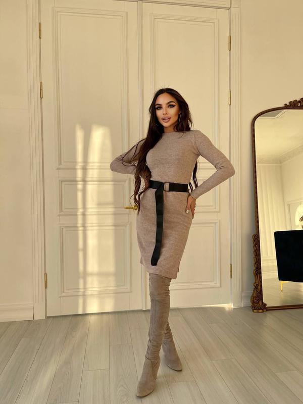 #платья Платье с разрезом на бедрах ⭐️ (№539) ✂️ Производство K&ML ▪️ Размеры: S(42-44), M(46-48) ▪️ Ткань: Ангора плотная ▪️ Длина изделия: 94 см ▪️ В комплекте пояс 📦 Отправка 1-4 рабочих дня
