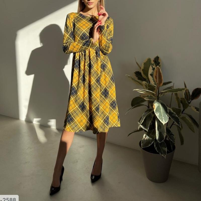 Сукня GE-2587 17210 Розміри: 42-44, 46-48 Тканина:трикотаж Колір: жовтий Виміри напівобхват Сукня вільного фасону 17210 Розмір 4244 Ог 44,5 см Від 42см Про йде на розширення Довжина 109 см Довжина рукава 60см Розмір 4648 Ог 49,5 см Від 47см Про йде на розширення Довжина 111см Довжина рукава 61см ----------------------------------------