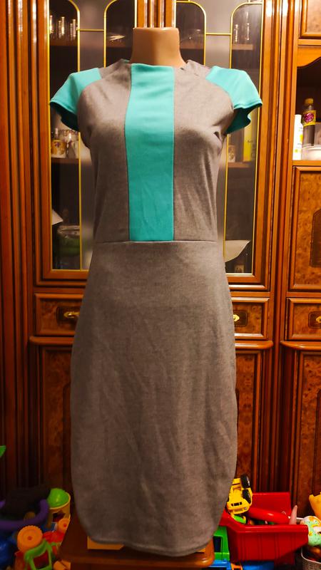 Сукня розмір 42-44, колір сірий+ голубий, ззаду на змійці, заміри: пог 44, піт 36, побіди 46, довжина 100, тканина тягнеться на пару-трійку см