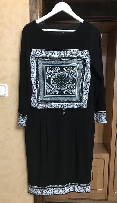 Плаття чорного кольору з кольоровими вставками, стройнящий силует, з кишенями, заужено до низу