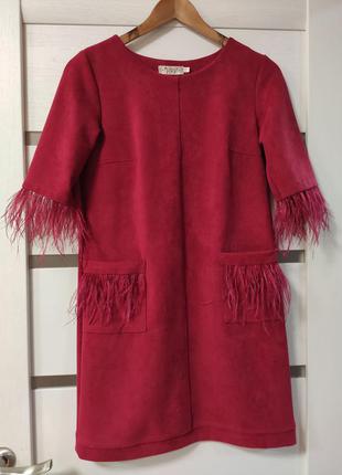 Тканина як ніби під замш. Прямий крій. Зручно, практичне. Розмір на фото. Підійде на ХС-С. Заміри є на фото. Трішки тягнеться тканина. Дивіться інші мої оголошення, розвантажую шафу і свою 😉, і дитячу, тому часто додаю нові речі!)🌺