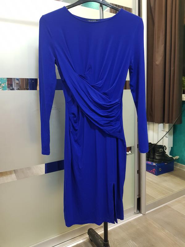 Красивое,нарядное платье миди цвета индиго,с переди разрез,очень круто подчеркивает фигуру.French Connection 12p.