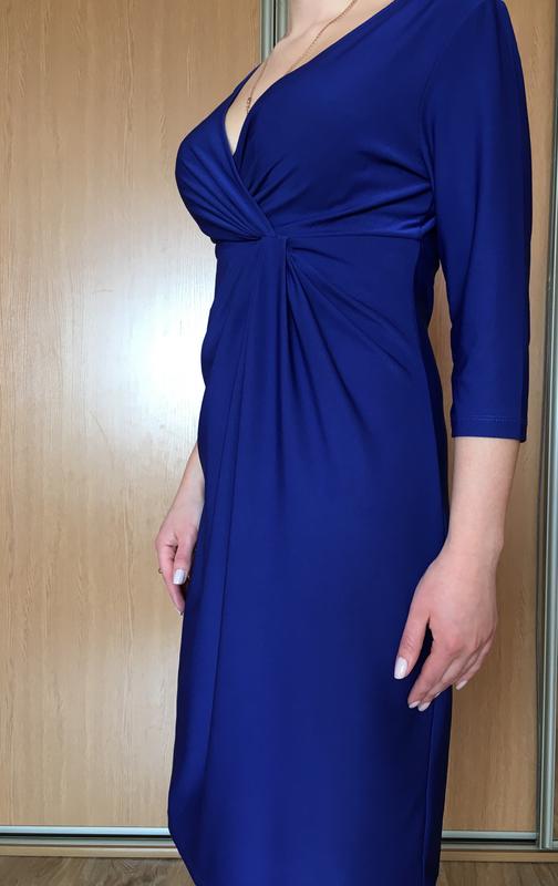 Ошатне плаття, красивого синього кольору. Рукав три чверті. Стан нової речі! Розмір М. 📌Заміри: Довжина від плеча-94 см Ширина під пахвами 45 див. Тканина тягнеться. Знизу, де починається спідниця, стягуюча підкладка - сіточка. Фото на моделі: ПРО-95, ОГ-87, ВІД-75 🌱Склад: 75% полиестэр 18% нейлон 7% еластан. Тягнеться.