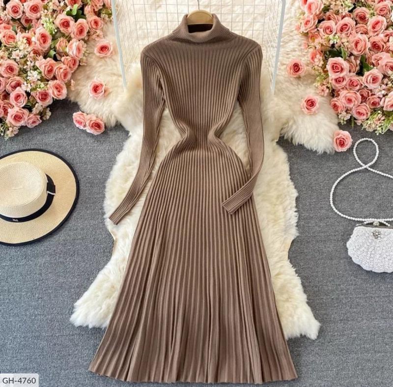 Сукня GH-4756 Розміри: 42-46 Колір чорний. сірий. коричневий. малиновий. пудра. бірюза. т. беж. білий.. Такі жіночні сукні з високим горлом (фабричний китай Тканина щільний трикотаж рубчик, спідниця плісировка Довжина 114 см рукав 57 см 8 кольорів ----------------------------------------