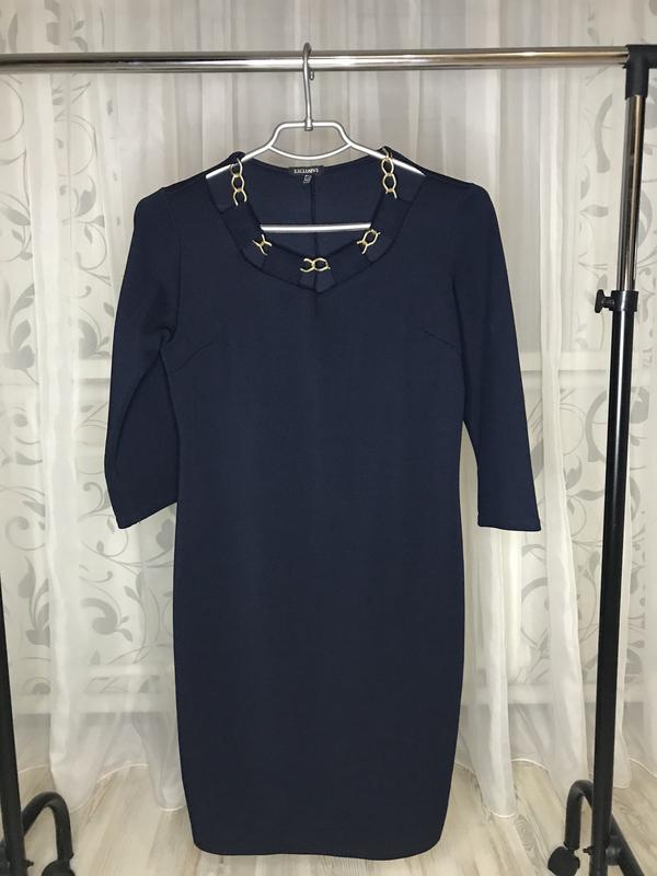 Платье темно-синего цвета. Рукав 3/4, длина 90 см. Размер 46.