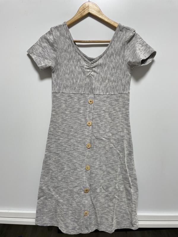 Плаття літнє, просте, легке. Довжина вище коліна, на грудях невеликий виріз, від грудей до низу нашиті ґудзики. Сукня від талії до низу йде трохи розкльошені. Матеріал приємний до тіла. Додаткові фото та заміри висилаю.