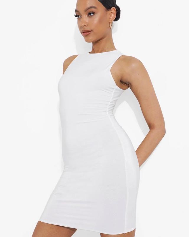 Елегантний дизайн спинки у формі гонщика для спортивного вигляду Привабливий принт Силует міні-сукні облягаючої фігури Виріз горловини додає жіночності Універсальний білий базовий колір для легкого укладання 95% ПОЛІЕСТЕР 5% ЕЛАСТАН