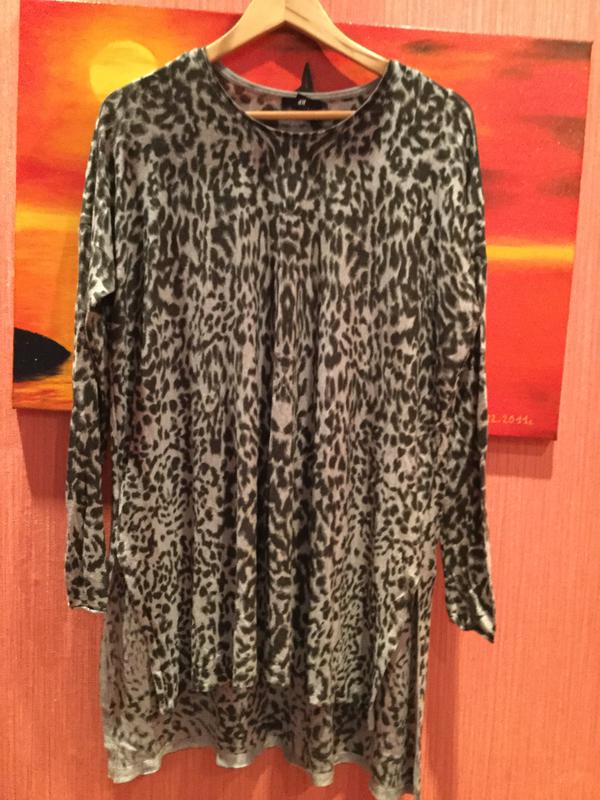 Довжина 80-99 см,по грудях 67 див. Написаний розмір М,але вона підійде і на 4-5 розмірів більше.