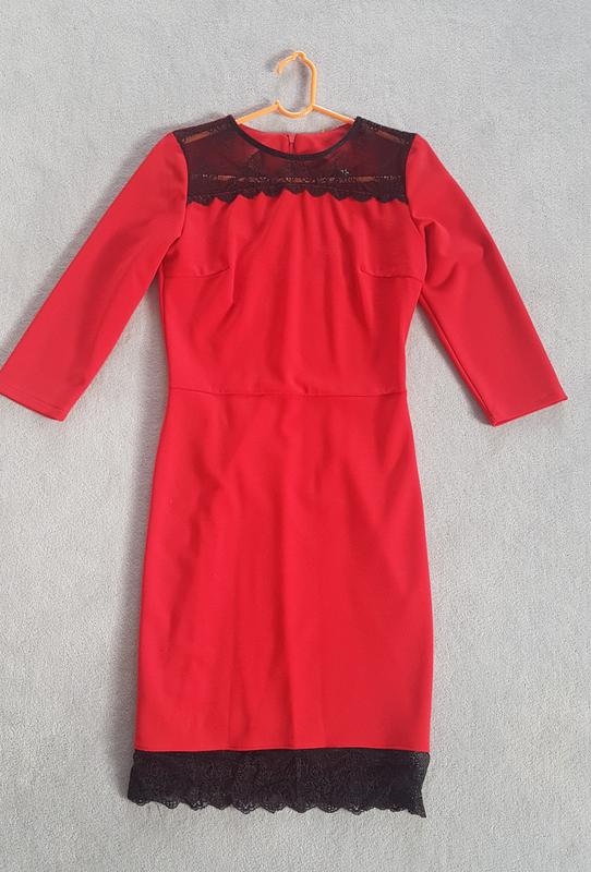 Червоне плаття міді з чорним мереживом 44-46р, стан нового, одягнене 1н раз.