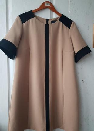 Оригінальне лаконічне сукню,бежеве ,з контрастними вставками.,невеликий рукав-28см,(обєм руки-до 38см)приємне до тіла.Довжина-97см,ПОГ-54см(+3см тягнеться),ПОБІДИ-62cm.Р-Р XL.
