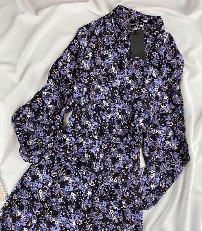 Сукня-сорочка довжини міді Розмір 36 100% віскоза Плечі 39,5 см По грудях 47 див По талії 38 см, Рукав 64 см Довжина 122 см