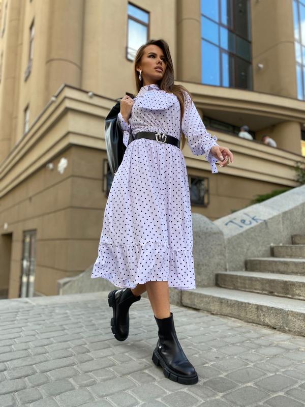Арт 303 Плаття, БАНТ Красиве і ніжне плаття в трендовому виконанні (рубашечном стилі), талія на резинці,застібається на гудзик перлинки, бант на шиї знімний пояс в комплекті, рукава на зав'язках Довжина: midi Тканина: полірований коттон Розмір: oversize 42-46 Ціна: 1300 грн