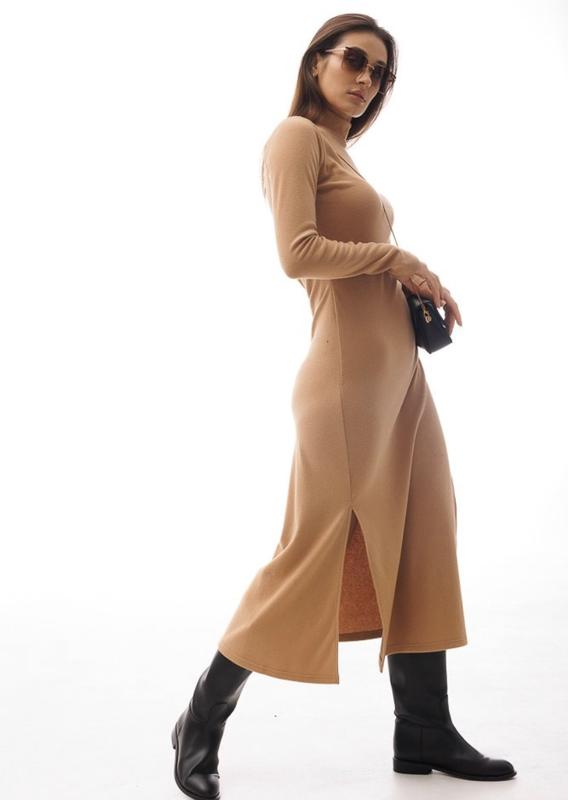 ПЛАТЬЕ-МИДИ ИЗ ТЕПЛОГО ТРИКОТАЖА В РУБЧИК БЕЖЕВОЕ С РАЗРЕЗАМИ СПЕРЕДИ Состав 50% полиэстер, 45% вискоза, 5% эластан Длина изделия: 125 см Длина рукава: 60-60,8 см Ширина под проймами: S - 40 см; M - 42 см; L - 44 см Ширина по талии:S - 33 см; M - 35 см; L - 37 см Ширина по бедрам:S - 44 см; M - 46 см; L - 48 см