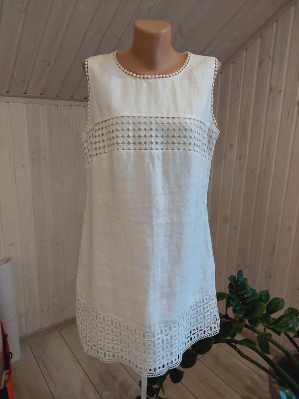 Льняное платье Next со вставками прошвы,по бирке размер 14UK 42EUR. Состояние идеальное. Дл.86см пог 49см пот 48см поб 54см