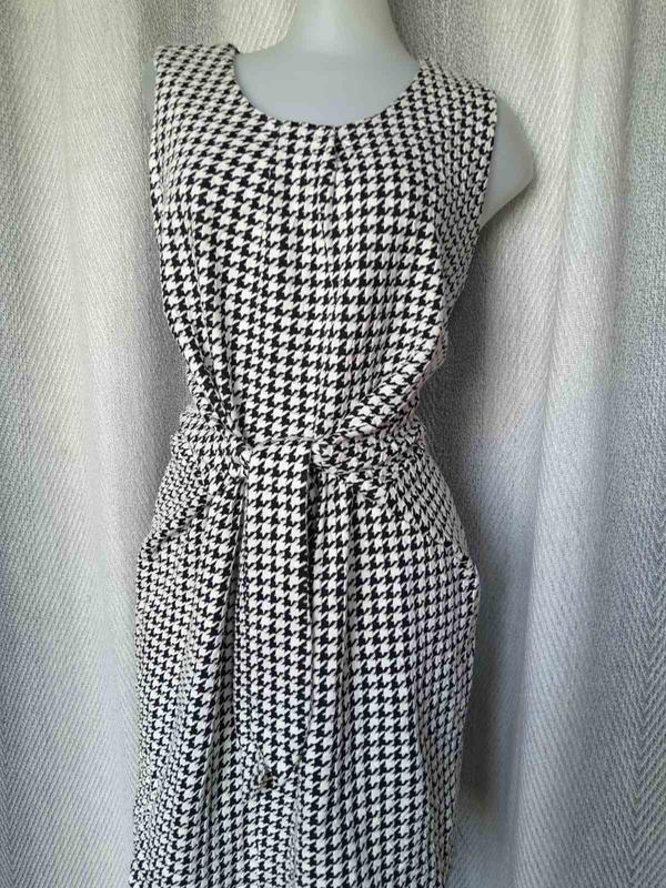 Жіноче плаття, сарафан, принт гусяча лапка. Жіноча літня сукня, плаття. розмір-наш 44, але орієнтуємося по вимірах, заміри: Плечі - 34 см, ПО грудях -45 см, талії - 52 см, утягивается поясом ПО стегна 59 см, низ 60 см , Довжина 80-81 см,