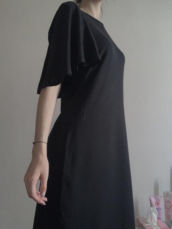 Чёрное миди платье с красивым рукавом. Ткань тоненький трикотаж Подходит на размер с-м