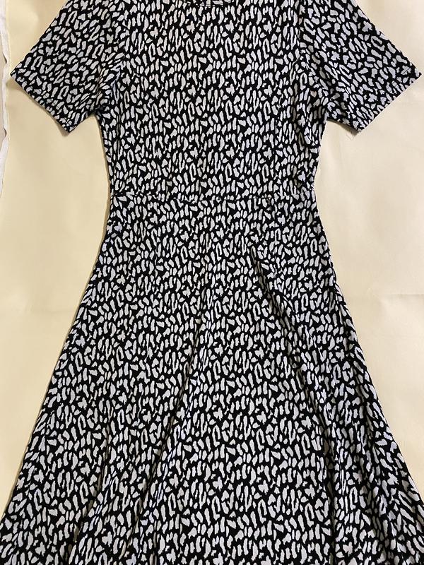 Сукню, стан нового, розмір S, довжина 94 см, плечі 33 см, рукав 22 см, талія 34 см ( напівобхват) в нерозтягнутому вигляді, тканина добре тягнеться.