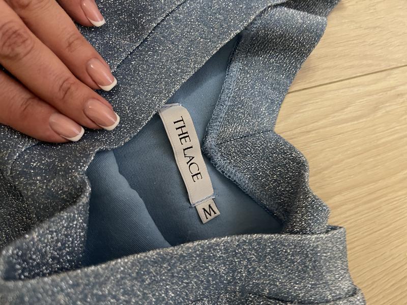 Ошатне плаття, блискуче, добре тягнеться. На зріст 168 см трохи нижче коліна. Розмір М. На ОГ 85-90 см, на 95-100