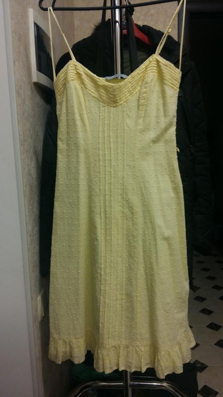 Бавовна. На підкладці. Міді. Дуже гарний!!!лимонний колір. гарно сидить на фігурі. є петельки для кріплення ремінця. стан нового! Пог 38 піт 37 побіди 50 довжина 85 без лямок.лямки регулюються