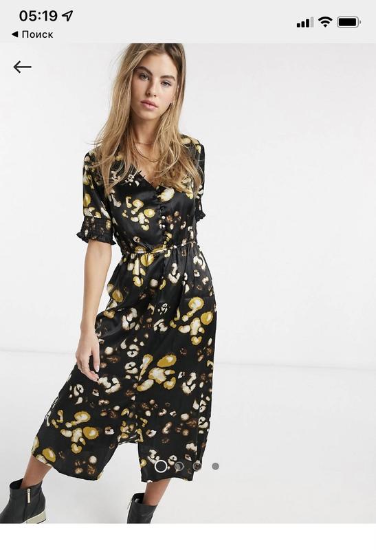 Сукня мідді з призібраними рукавами та гудзиками з переду. Приємна тканина. Сукня власноруч була замовлена на сайті Asos того року.