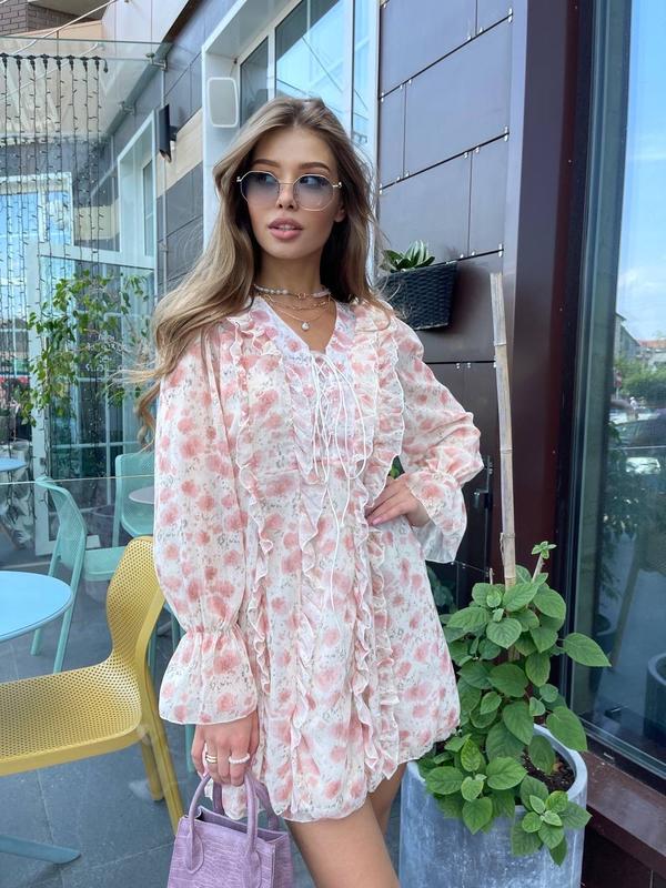 Платье в нежной расцветке с рюшами☺️❤️ Мод:856 Размер: универсал 42-44 Ткань: шифон на подкладке Длина 82см ▪️Есть наложка с предоплатой в 100 грн ✔️ Отправка новой почтой по всей Украине ✔️ 100% предоплата на карту приват банка МНОГО НОВИНОК в моем интернет магазине на СТРАНИЦЕ ПО ОЧЕНЬ ДОСТУПНОЙ ЦЕНЕ🔥💣 {одежды, купальники} переходи и УБЕДИСЬ В ЭТОМ САМ 🥰🌹