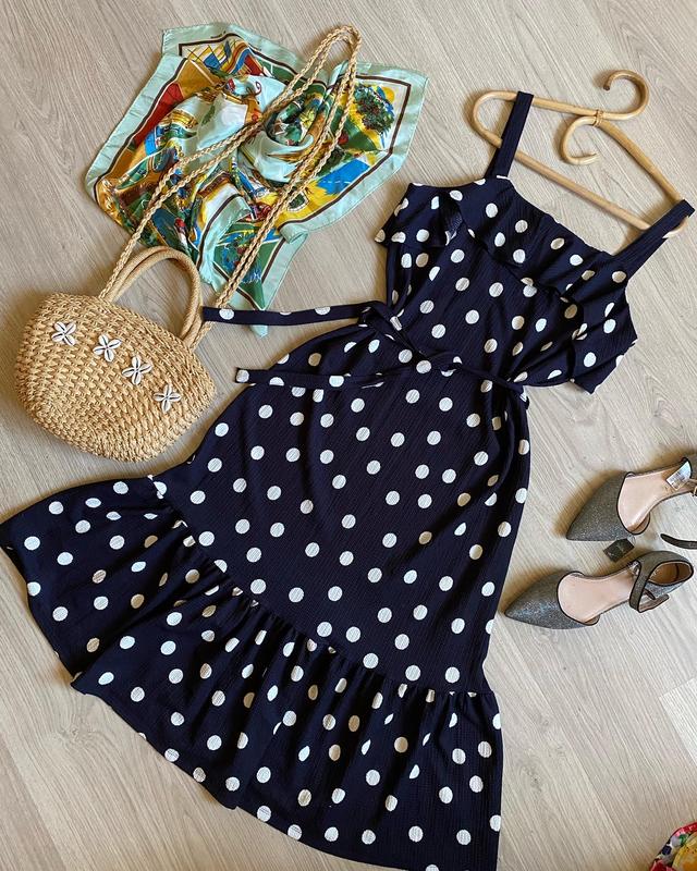 Чорне в горошок 18 р Пог 55-60 піт 55 пояс побіди 62 Тягнеться Дл 130