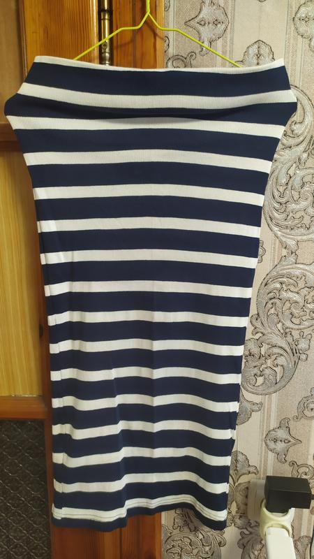 Плаття по фігурі синє в білу смужку