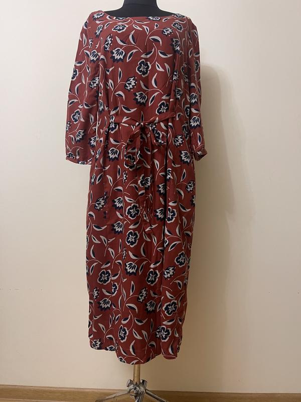 Сукня 14 розміру. Бренд Seasalt Cornwall. Коттон 50 %, віскоза 50 %. На підкладці віскоза. Нове. Плечі 42 см, ПОГ 52 см, ПОБІДИ 60 см, довжина 114 див. Рукав 47 см. Колір цегляний, принт бежевий і синій.