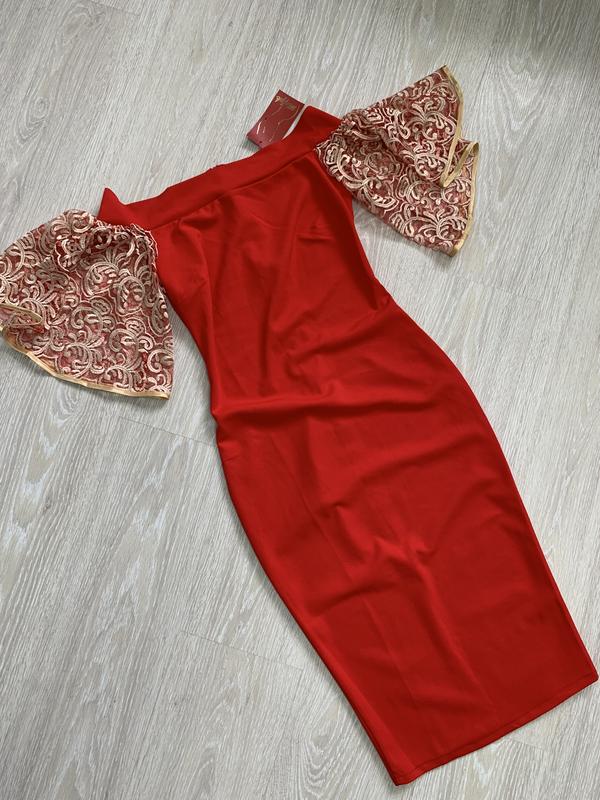 Розкішне червоне плаття міді з об‘ємними рукавами ♥️ Розмір S