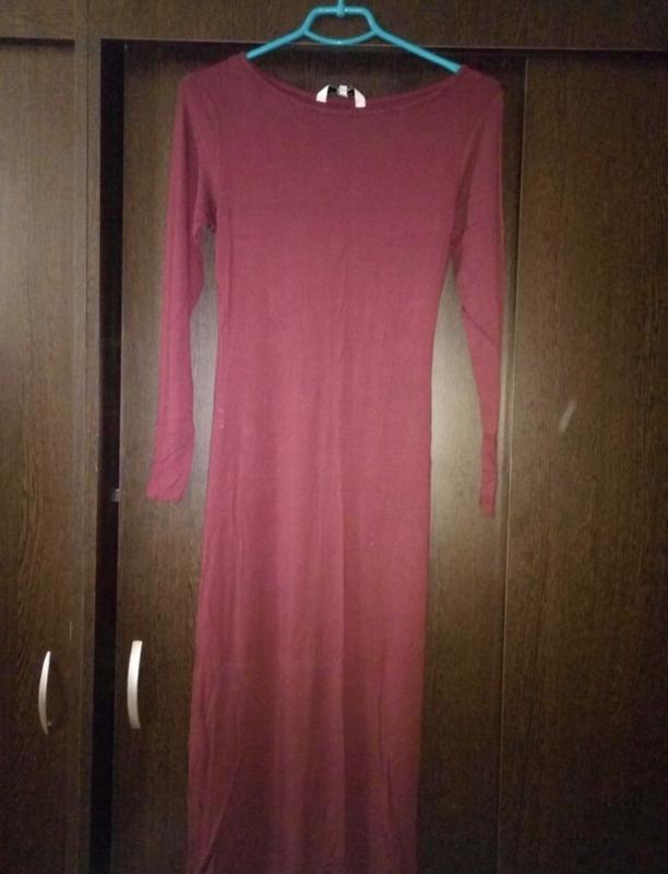 Сукня New Look, колір бордовий або марсала , розмір вказаний 12, відмінно тягнеться. Заміри : довжина по спинці 107 см, напівобхват в талії 32 (добре тягнеться до 36), рукав 56, пахви або груди 41 (так само добре тягнеться). Фото на тілі немає.