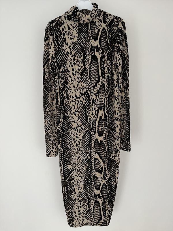 Сукня міді леопард принт сукня міді приталена по фігурі довгий рукав