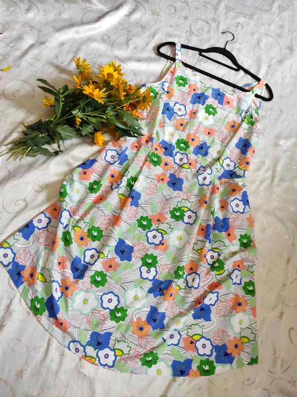💥 Складу поліестер, стан ідеальний, розмір вказано uk 20, орієнтуйтеся на заміри Пог 54+- Висота від плеча до лінії відрізу 39 Ширина по лінії відрізу 52 Побіди 63+- Дл вироби 97 Застібка блискавка по спинці